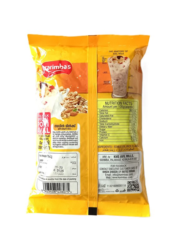 Karimbas Avil Milk Pori Avil is a brand of crispy, roasted rice flakes (avil/poha) specially prepared for making the popular Kerala street drink, Avil Milk
